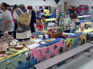This past weekend, we were able to go out and do a live event - always a lot of fun! Mom and I packed everything up, including Richard and the kids, and we headed to north Phoenix for a show at Roadrunner Elementary school. It was our first school show and I didn't really have a great idea of what it was going to be like, but it was really pretty cool! The vendor fair part was set up in the cafeteria where everyone entered, and then the food and games were farther back inside the school yard. They had a bouncy house and tons of games and food vendors like Jamba Juice came in for the event.